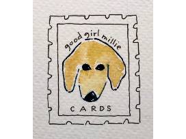 Soon the girl (Clare, of NYC) told the mom (Sue, of Williamsburg, Virginia) to "start a business!" (selling cards, handmade and locally printed) named for the new puppy (Millie, who is usually a good girl).