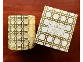 Add some sparkle to your home with this "Citrus Spritz" glass candle with gold caning.