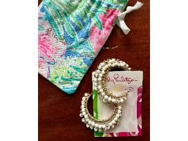 Add some sparkle to your wardrobe with these resort white and gold hoop earrings from Lilly Pulitzer.