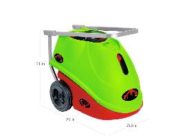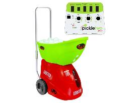 Based on the same sleek design of their tennis ball machines, the pickle two features an inverting hopper, folding handle, and large 8-inch wheels, making it easy to get the 42 pound machine in and out of your car, over curbs, and across any surface to the court.
