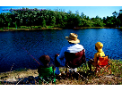 Zebco fishing pole with bobbers, sinkers, lures, tackle box and baker hook. Also included a Mosquito Repellent outdoor lantern.