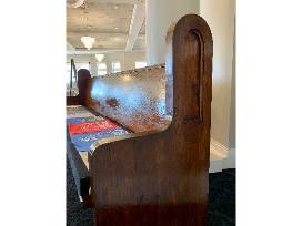 Refinished church pew with handmade cushion.