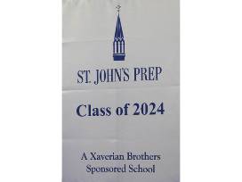 Take home this piece of memorabilia from SJP! This one-of-a-kind banner walks along with your son and his classmates on Graduation Day.