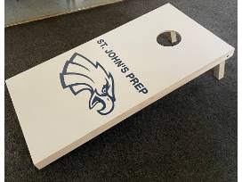These sturdy, wooden cornhole boards with the SJP Eagle logo will be a hit at every backyard party!