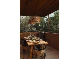 Casa de Angel 7 is part of a boutique development with 7 other villas and security. It shares a central pool but also has a private plunge pool on its roof. It is about 3200 sq ft, featuring 2 bedrooms and 4 baths. The bedrooms include 1 king room and 1 bunk room with two queens and two twins, sleeping 8 total. The villa also boasts a rooftop kitchen and outdoor shower. It is fully equipped with everything you need including 6 bicycles.