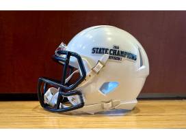 One side of the helmet features the interlocking "SJ" logo, while the other side proudly displays "2018 Division 1 State Champions".