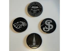 One of a kind set of 4 etched marble coasters with holder, designed and printed by SJP students Cameron Hastings '24 and Charlie Westwood '24 in class with Ms. Standring - Computer Aided Design and 3D Printing.