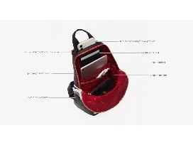 Exterior: Top access Cell phone pocket, back luggage handle pass-through, 2 side pockets, adjustable straps, top handle