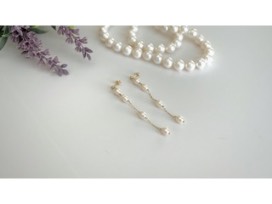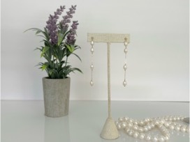 Beautiful 10K yellow gold organic shaped pearl drop post earrings. 3" in length.