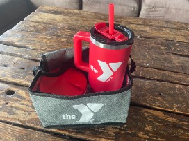 6 month Community Plus Membership - expires 6/1/2025. Plus lunch tote with YMCA branded water bottle and food storage container.