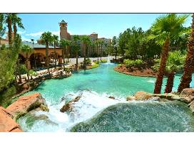 A challenge for all levels of players, the Palms championship course in Mesquite features lakes, sand traps and more than 200 palm trees, the 6.804 yard, par 72 is a challenge for golfers of all levels.