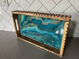 Poured Paint Wood Tray