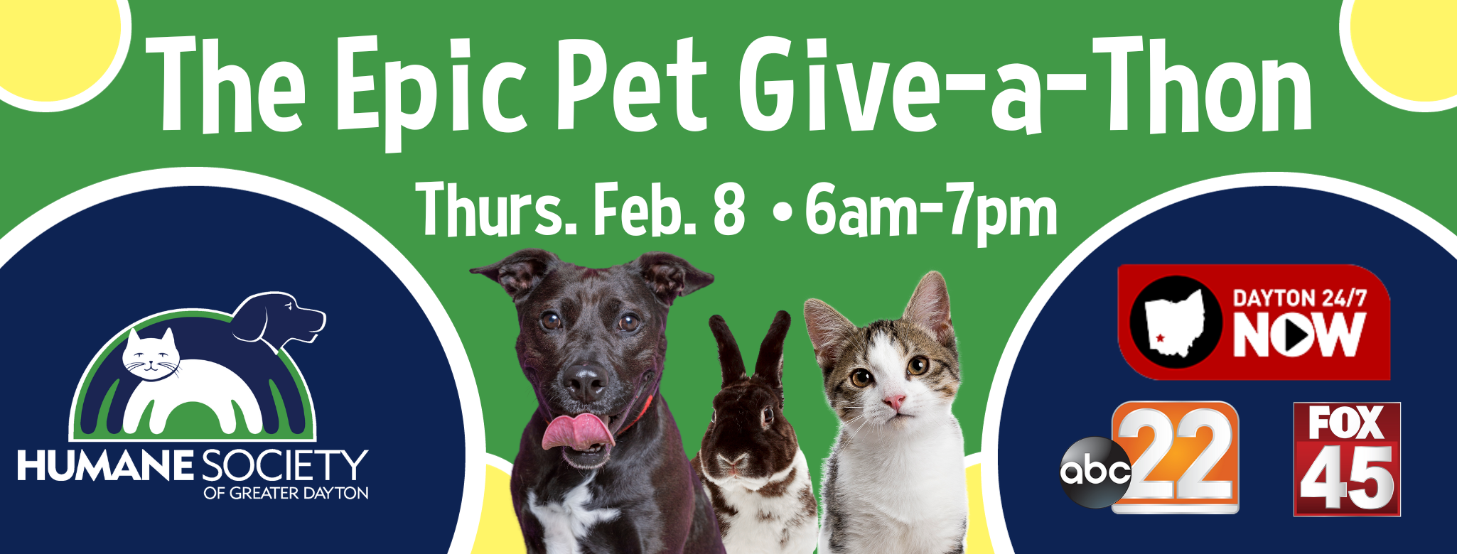 Join us on Thursday, February 8th from 6 a.m. to 7 p.m. for a day filled with love, joy, and saving lives at the Annual Epic Pet Give-a-thon hosted by the Humane Society of Greater Dayton! Be part of something extraordinary - be EPIC for the Pets!