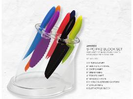 Get 8 key pieces of colorful kitchen cutlery and accessories in an acrylic knife block with the Kai PRO Pure Komachi 2 9-Piece Block Set.