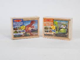 Explore prehistoric adventures and construction challenges with Melissa and Doug's Wooden Dinosaur and Construction Jigsaw puzzles, packed conveniently in one engaging box for endless imaginative play!
