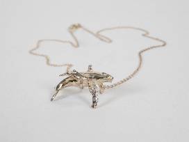 Kohola Humpback Whale + Baby Necklace - a mama and baby snuggling in the blue suspended on a lovely 3mm rolo chain. Perfect for moms and people who love their moms!