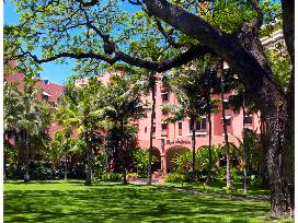 Indulge in a two-night stay at the Royal Hawaiian Resort Waikiki in the Historic Ocean Wing. You will have an ocean view room with two double beds,
