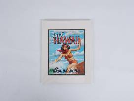 Surf Hawaii: Art print done by Garry Palm. Features: beautiful girl riding a wave. Art print produced on acid-free papers using archival inks. Print includes a 1" white border around the image to allow for future framing and matting, if desired. Size: 8" x 11" without the white frame.