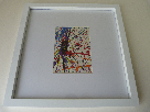 One-of-a-kind artwork entitled "Abstract Map" created by Team Eagles (2nd Graders). Acrylic on paper. A study on emotion and artist Jackson Pollock.
