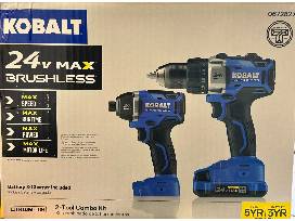 Kobalt 24-volt cordless combo kit includes 1/2-in brushless drill/driver, 1/4-in brushless impact driver, 2.0Ah battery and charger
