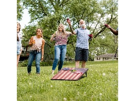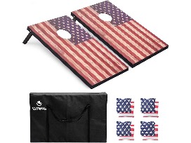 This patriotic inspired Corn Hole Set includes 2 cornhole boards( 3x2feet), 8 bean bags (5.5x5.5inches), and 1 big carrying bag. The carrying bag can be used to pack everything up and protect the boards inside from dirt and moisture.