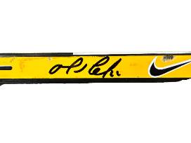 A hand-signed letter from Mario detailing the stick as well as a Certificate of Authenticity from Sign On Sports guarantees the authenticity of the game-used stick.