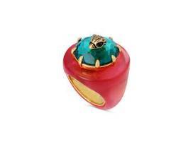 NEW from Kurt Geiger. Eagle gemstone ring. Size 8 and Light blue crystal stone huggie hoop. Gold tone. Hinge closure