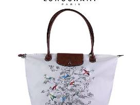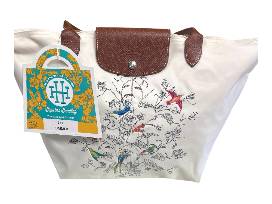 Gently used - Limited edition Le Pliage from the "Arbre de Vie" (tree of life) collection. White bag with bird design. Brown leather handles
