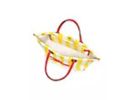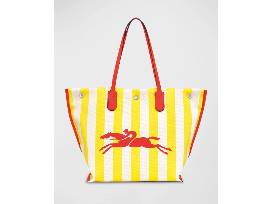 NEW Longchamp Roseau essential striped logo canvas tote. Yellow striped with orange logo and details. Inside flat pocket. Dust bag included.