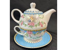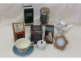 Afternoon tea for one! This package includes a unique set of four tea bag tins, an individual teapot with a cup and saucer, cork coasters, mini puzzle, and a candle tin.