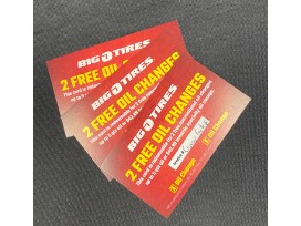 - 3 Oil Change Cards for 2 Oil Changes each (6 in all!) redeemable for conventional oil changes up to 5 quarts oil or $42.99 toward a specialty oil change at the Big O Tires Rolla location.