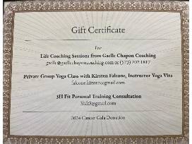 Donated By: 3H Fit, Gaelle Chapon Coaching, and Kirsten Falcone, Instructor Yoga Vita