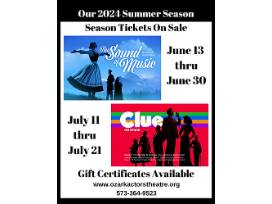 Summer shows include The Sound of Music running from June 13 thru June 30 and Clue: On Stage running from July 11 thru July 21.