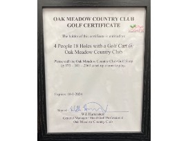 - Certificate for Four Rounds of Golf W/Cart at Oak Meadow Country Club