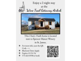- 2 Night Stay at the Wine Trail Getaway Airbnb (2 bed, 2 bath) located next to Spencer Manor Winery