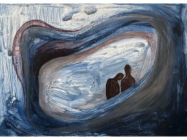 relationship between intuition and our internal and external worlds? Everything is everything. Working intuitively, almost never having a set plan when beginning, they create a representation of the subconscious. Writing is also central to their practice. Castronuovo primarily works with paint, collage materials, and textiles, specializing in installation art, to explore these concepts.