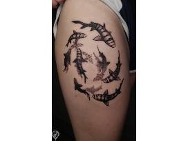 With tattooing, I have found that black and grey works best with my philosophy and technique that resonate with my clients vision. The tattoos I craft are characterized by bold, or simple designs with strong contrasts and a conscious use of negative space, ensuring their endurance over a lifetime. My method is respectful, both to the client's skin and their time, minimizing trauma and discomfort without compromising the artistry.