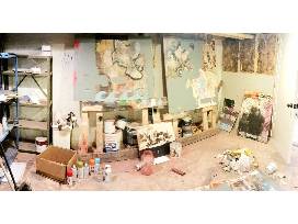 Most of Michael's current work takes shape in the form of "reduction paintings" a technique that is used to form images through the idea of removing the layers of paint to reveal a narrative. Michael begins his work by creating the layers needed to build a narrative based on the work series he is engrossed in. He then starts by scraping, sanding, and removing, resulting in the final images that, through the many layers, tell a story. The end goal of this process is like seeing a lone billboard in decay, multiple torn layers, and ghost like remnants. It tells a story. It shows a beauty.