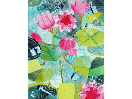 Inspired by nature, Nicole uses watercolor, inks, acrylic, and handpainted papers to build texture in her paintings. She enjoys finding the patterns in botanical subjects, then applying them to her works. Elements of embroidery, Polish and Pennsylvania Dutch designs, and natural handwriting often find their way into her paintings.