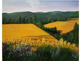 My body of work can be a bit eclectic. I love to explore and experiment with various techniques utilizing different tools to create a piece; so there may be a landscape here, an abstract there, a bavarian pretzel headpiece or dancing teacup for the stage. Sometimes I am driven by music, sometimes it's to capture the colors I saw , sometimes it's for theater, sometimes it's because I just want to try "that"! These past couple years I've been drawn to the forests I have had the privilege to visit as we camp our way through the seasons. I am in love with the landscapes of Pennsylvania and New England.