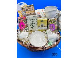 Tea set, variety of tea bags, infuser and 'Dogs at Tea' prints