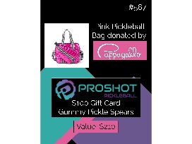 Proshot Pickleball $100 Gift Certificate & Gummy Pickle Spears, Pink Pickleball Bag donated by Pappagallo in OC