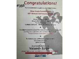 Winner receives 2 complimentary tickets to the AtlantiCare Foundation's 63rd Annual Century Club Gala