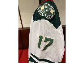 Bid now on this #17 Marcus Foligno authentic Adidas jersey in size 58. This is a custom Marc-Andre Fleury 1000th Game Celebration Jersey designed to be worn during pre-game warm-ups on February 9, 2024 versus the Pittsburgh Penguins. The jersey will be autographed following the game and winners will receive their jersey following the close of the auction. *Please note: If the player does not play in the game, the winner will be given the player-issued, unworn, autographed warm-up jersey. If the player is a call up from the Iowa Wild and is not present on February 9th, winner will receive the new, unworn, unsigned player jersey. MN Wild Certificate of Authenticity available upon request. Winning bidders can coordinate with Foundation staff to pick up from Wild Offices in St. Paul after February 26 or can opt to ship - add'l shipping fees will apply and are coordinated by Foundation staff.