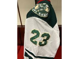 Bid now on this #23 Marco Rossi authentic Adidas jersey in size 54. This is a custom Marc-Andre Fleury 1000th Game Celebration Jersey designed to be worn during pre-game warm-ups on February 9, 2024 versus the Pittsburgh Penguins. The jersey will be autographed following the game and winners will receive their jersey following the close of the auction. *Please note: If the player does not play in the game, the winner will be given the player-issued, unworn, autographed warm-up jersey. If the player is a call up from the Iowa Wild and is not present on February 9th, winner will receive the new, unworn, unsigned player jersey. MN Wild Certificate of Authenticity available upon request. Winning bidders can coordinate with Foundation staff to pick up from Wild Offices in St. Paul after February 26 or can opt to ship - add'l shipping fees will apply and are coordinated by Foundation staff.