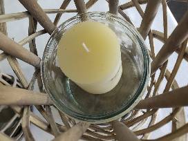 Lanterns made of natural willow are so chic and stylish. It is sure to make an outstanding decor piece in your garden or living space. Removable recycled glass insert with two candles included.
