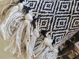 - A throw with a lovely geometric pattern with a fringe border.