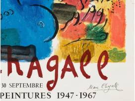 Add this signed lithograph to your collection. This lithograph poster, titled "Peintures 1947-1967" by Marc Chagall (Russian/French, 1887-1985) was created for an exhibition to be shown at Fondation Maeght in France. This unique piece includes an unauthenticated but likely original signature in the lower right hand corner.