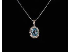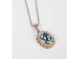 Beautifully crafted necklace by Charles Krypell. Sterling Silver & 18kg Pendant containing 41 round diamonds = 0.25cts & 1 14x10mm oval Blue Topaz.