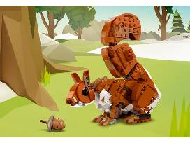 Play out fun stories in a woodland scene with a red fox toy, then rebuild it into a squirrel toy or an owl figure.